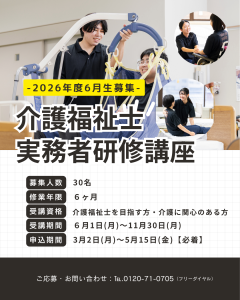 3月より、2026年度開講に向け『介護福祉士実務者研修講座』のお申込みを受付いたします。